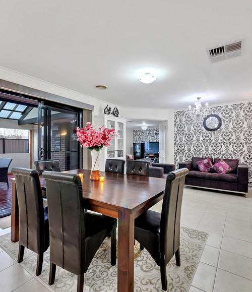Featuring 5 spacious bedrooms (or 4 bedrooms plus a theatre/rumpus room), this home is designed to meet all your family’s needs. The master suite boasts a walk-in robe and a private ensuite, while the remaining bedrooms include built-in robes and are serviced by a central bathroom.